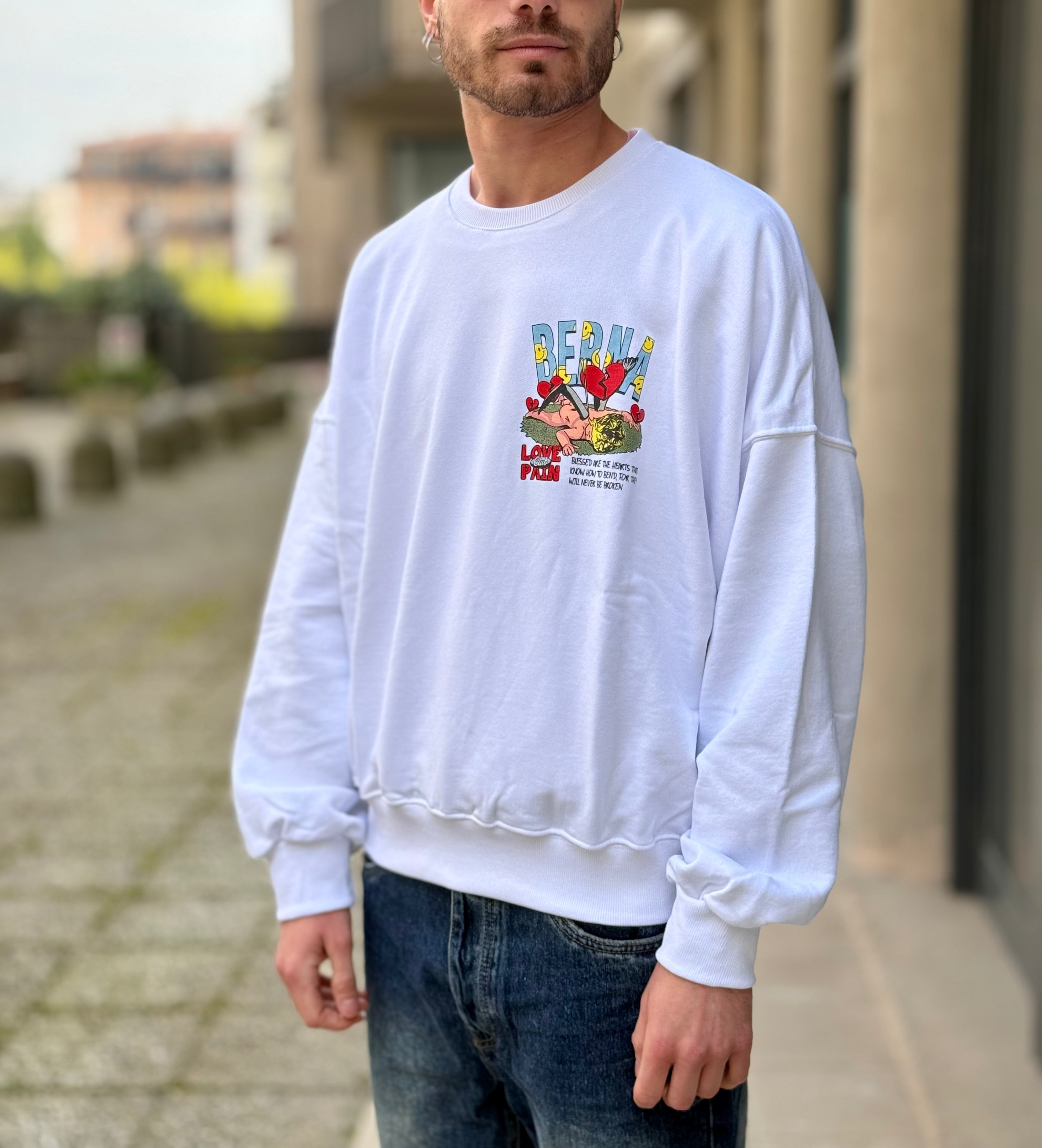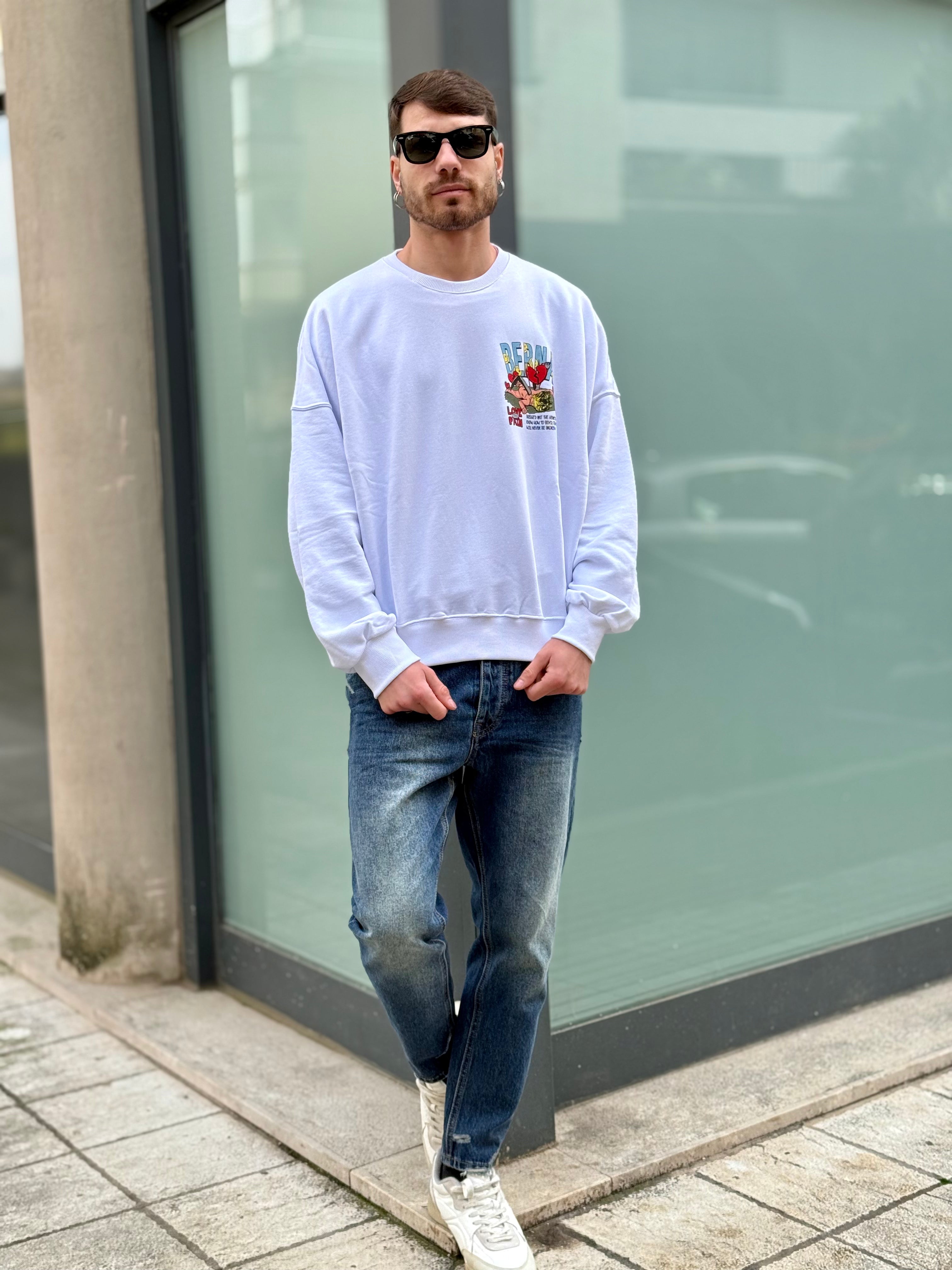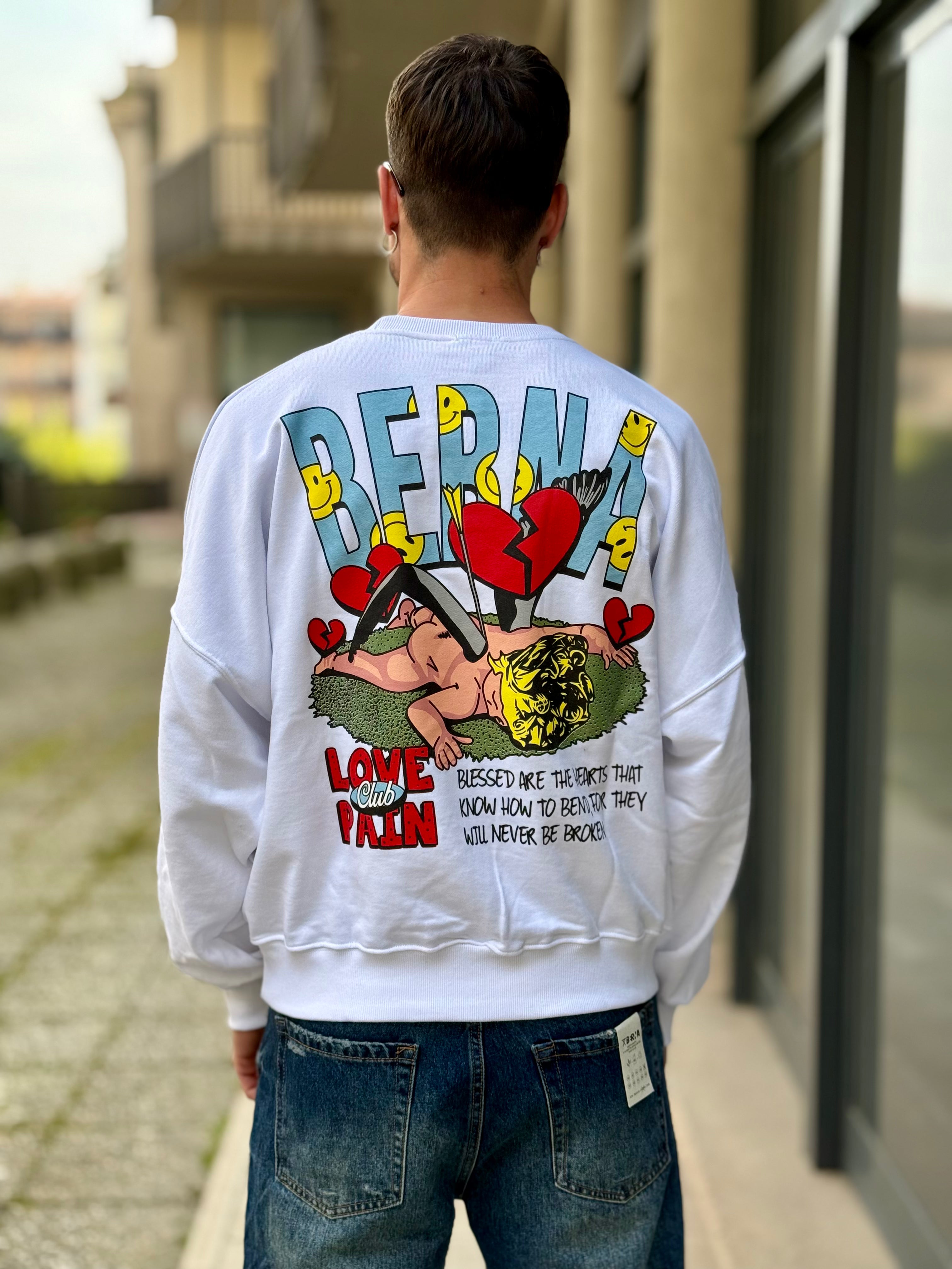Felpa garzata bianca con stampa dietro la schiena Berna
