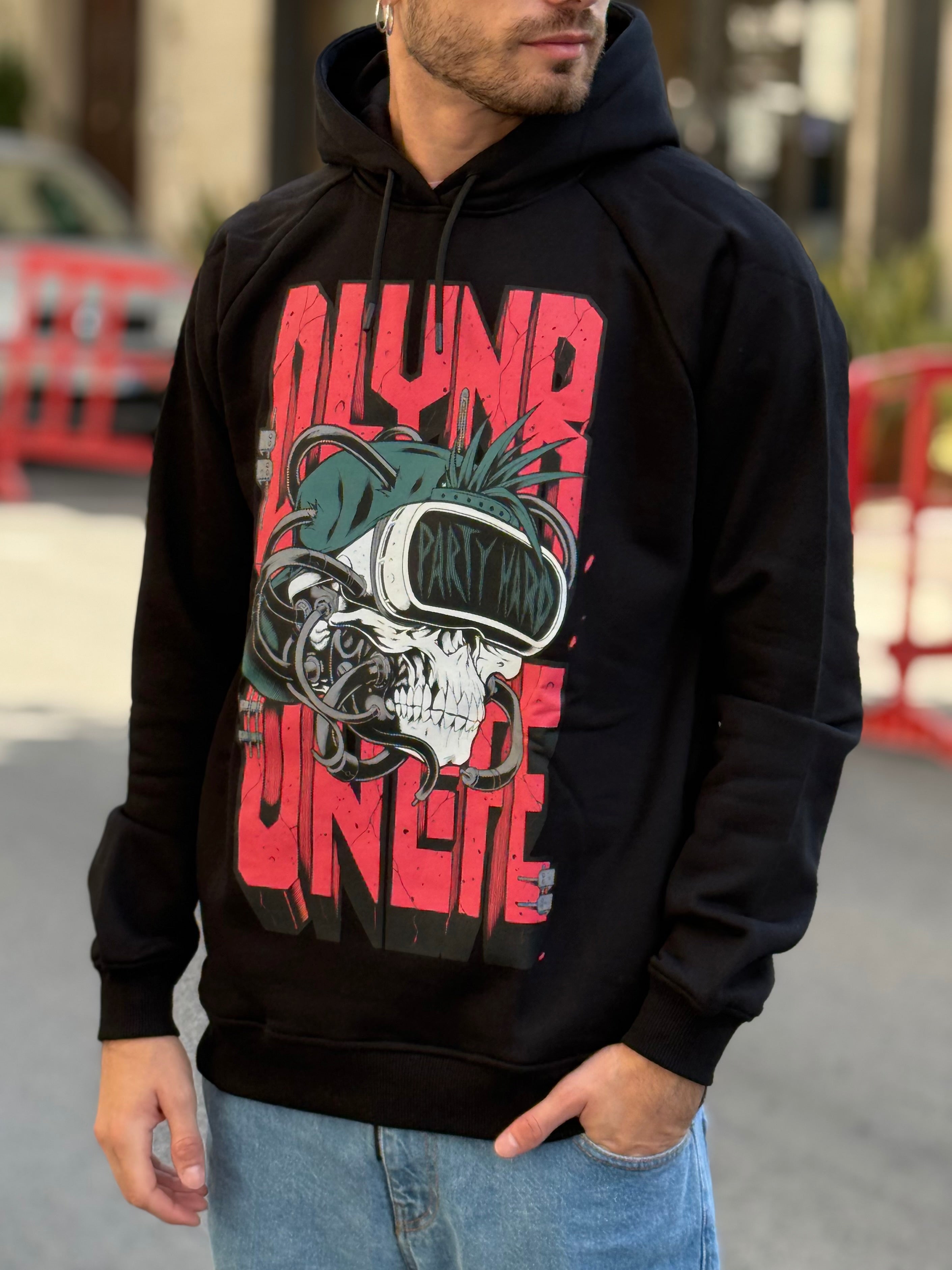 - felpa nera con stampa frontale