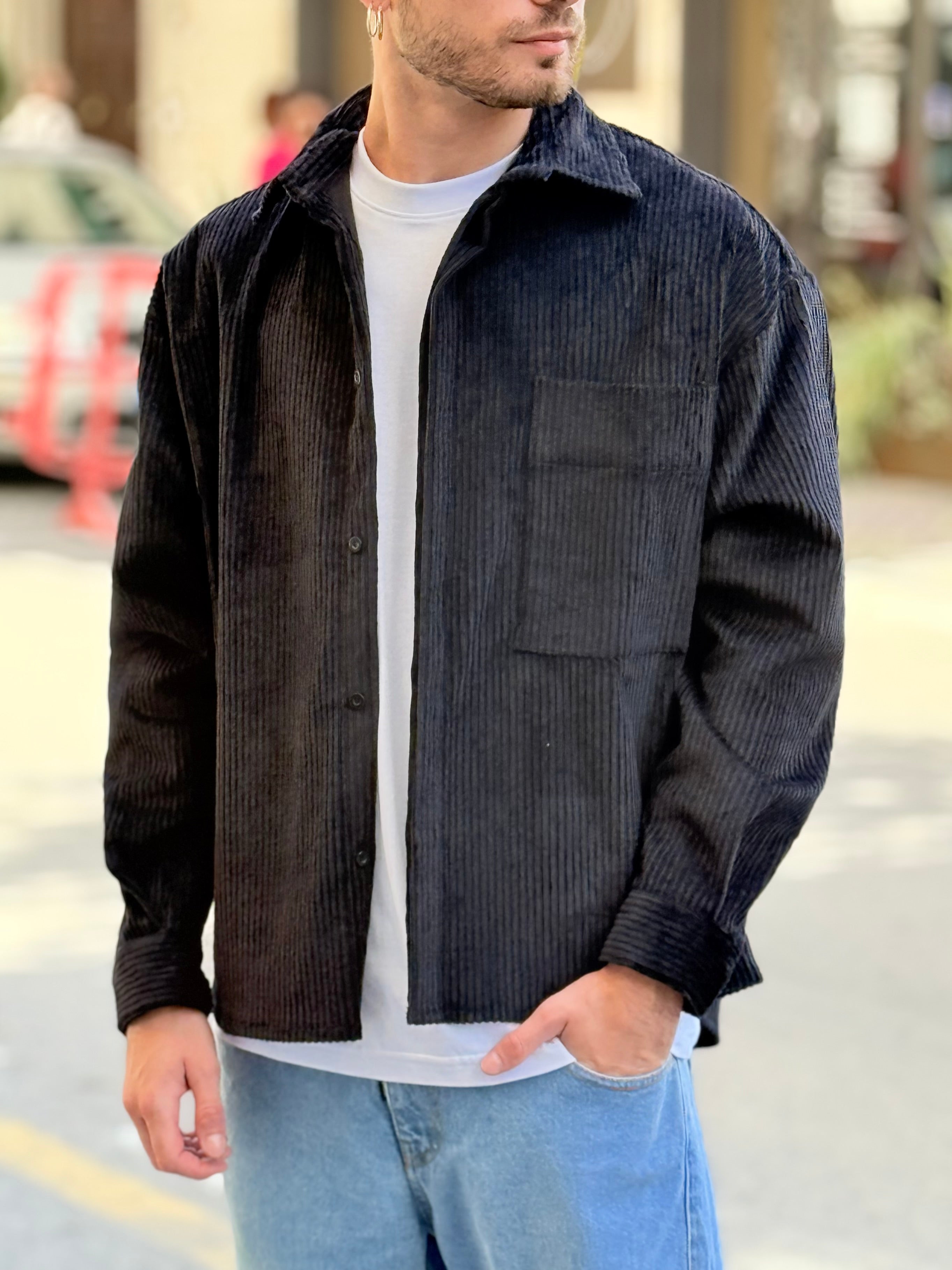 - camicia stondata in velluto nera Njb