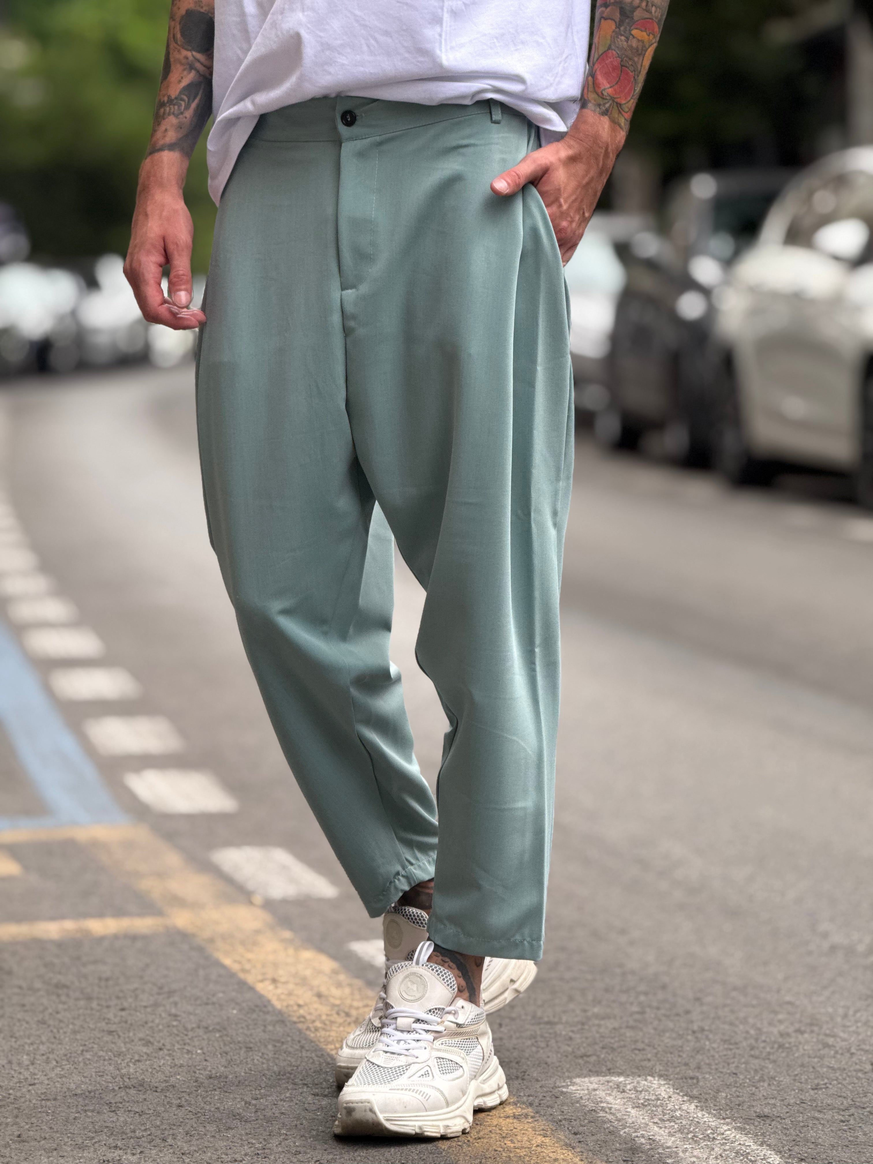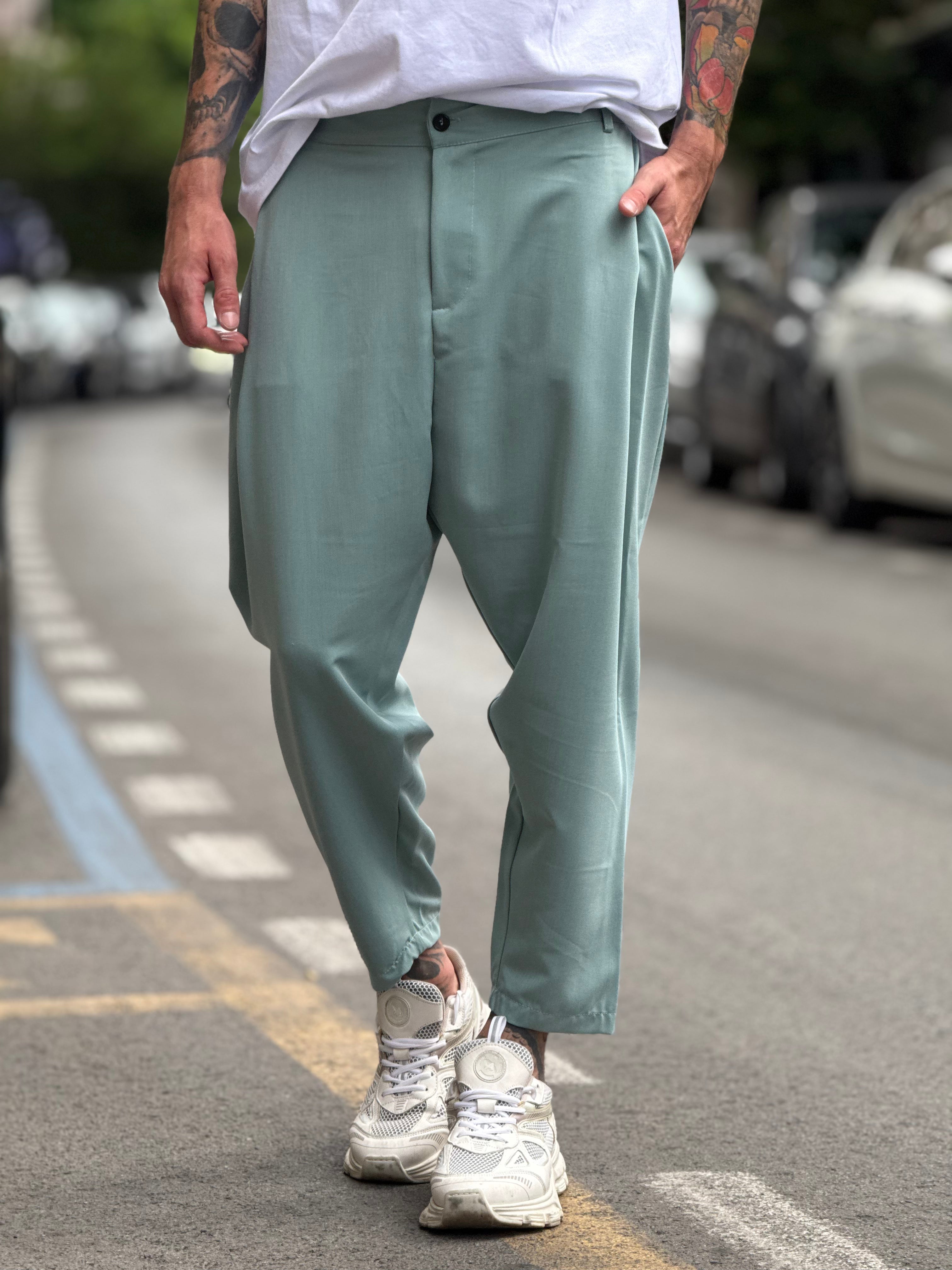 - pantalone kid acqua marina  con bottone e molla in vita Njb