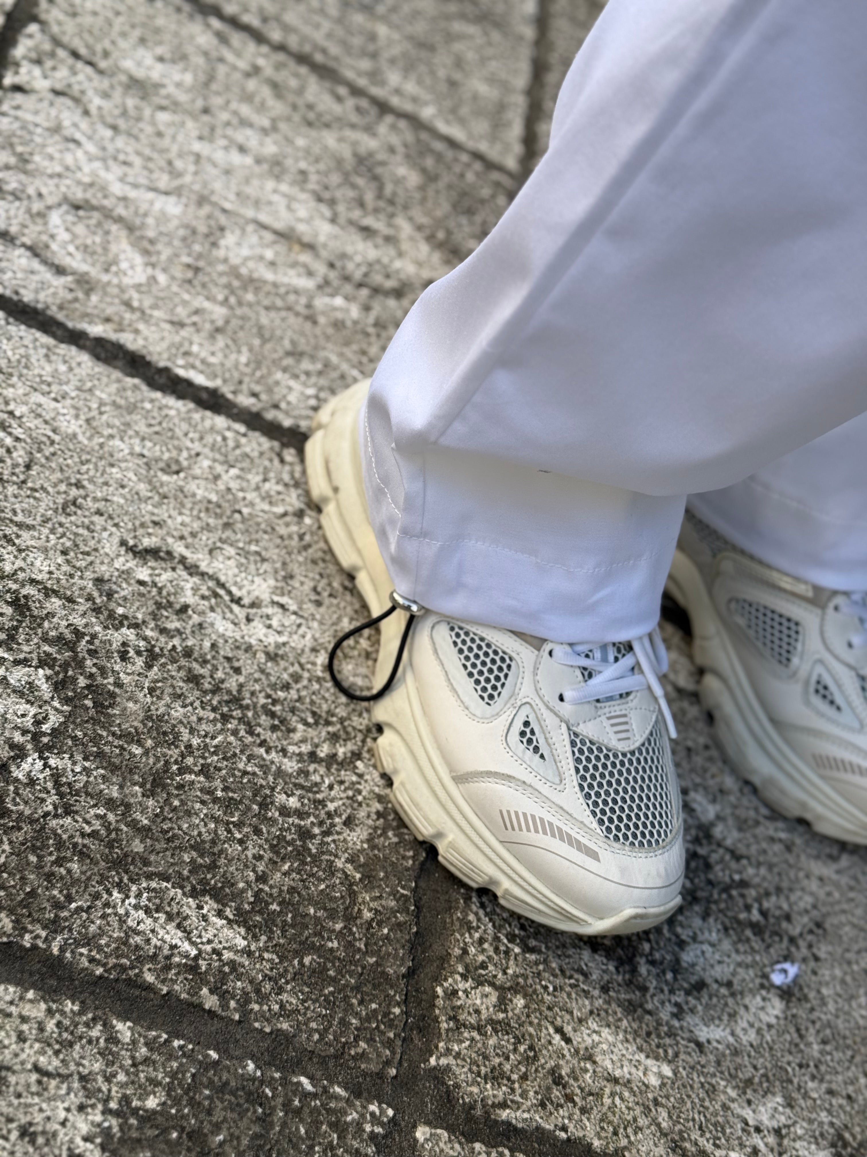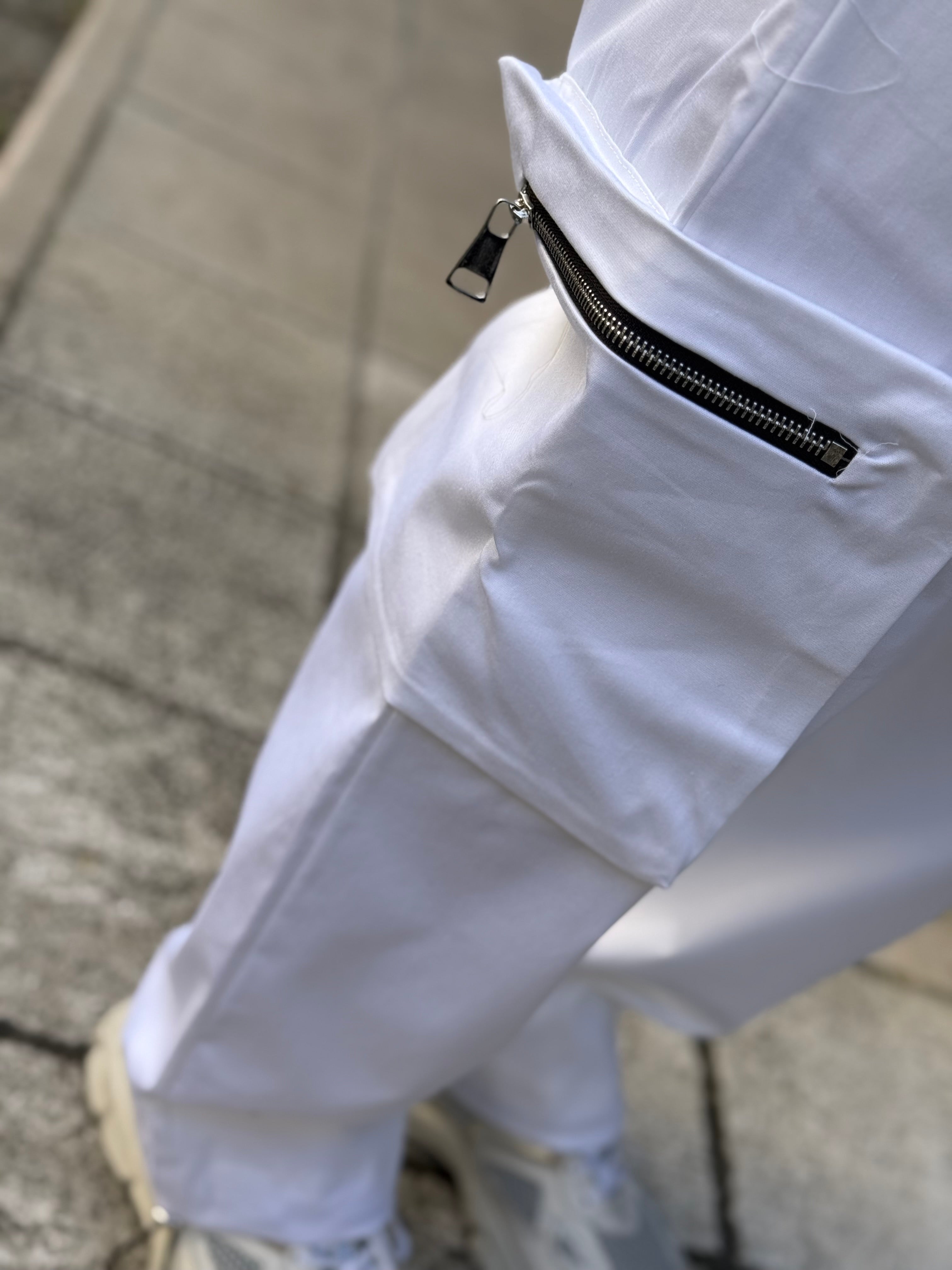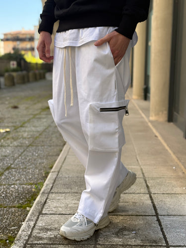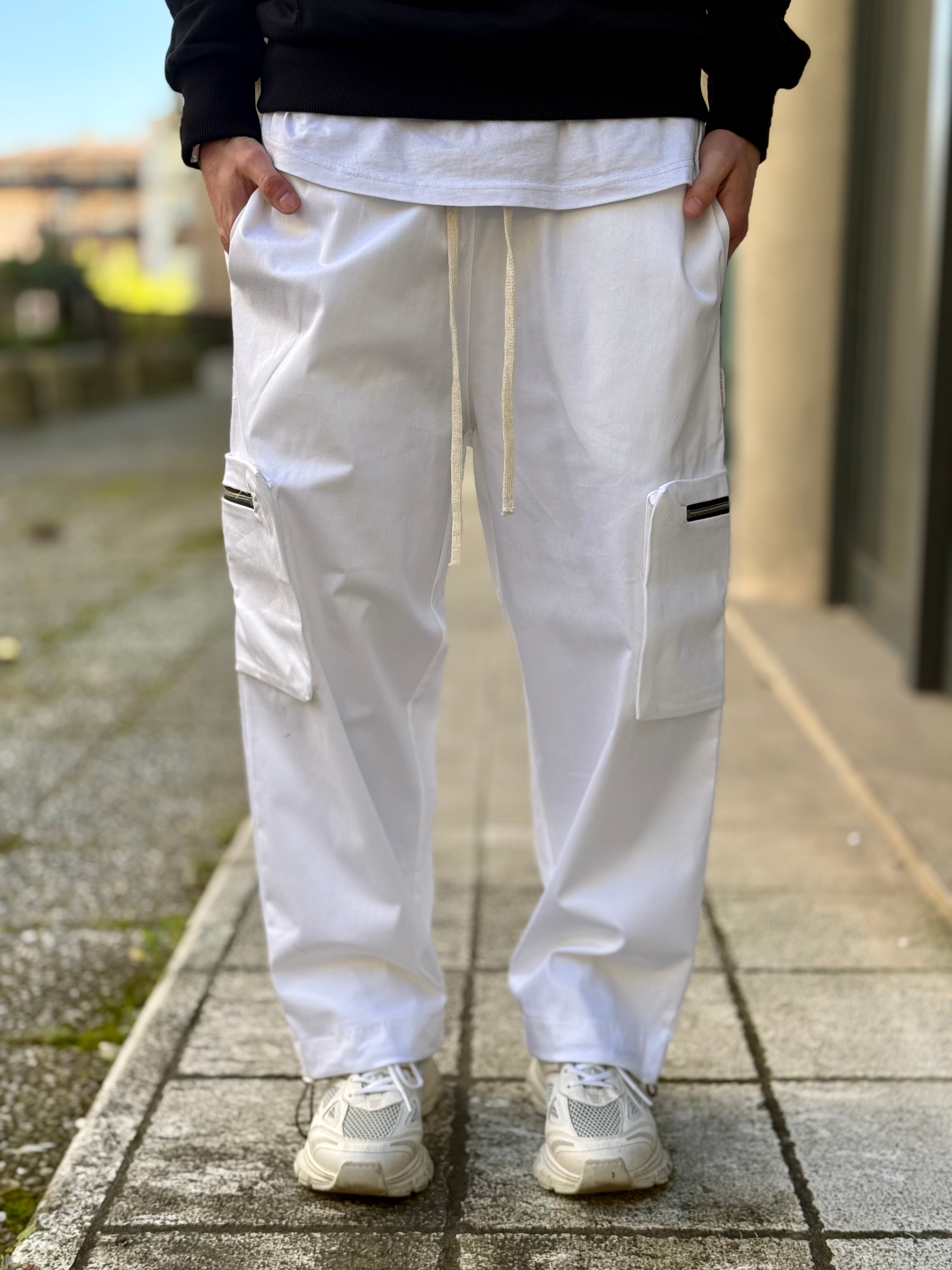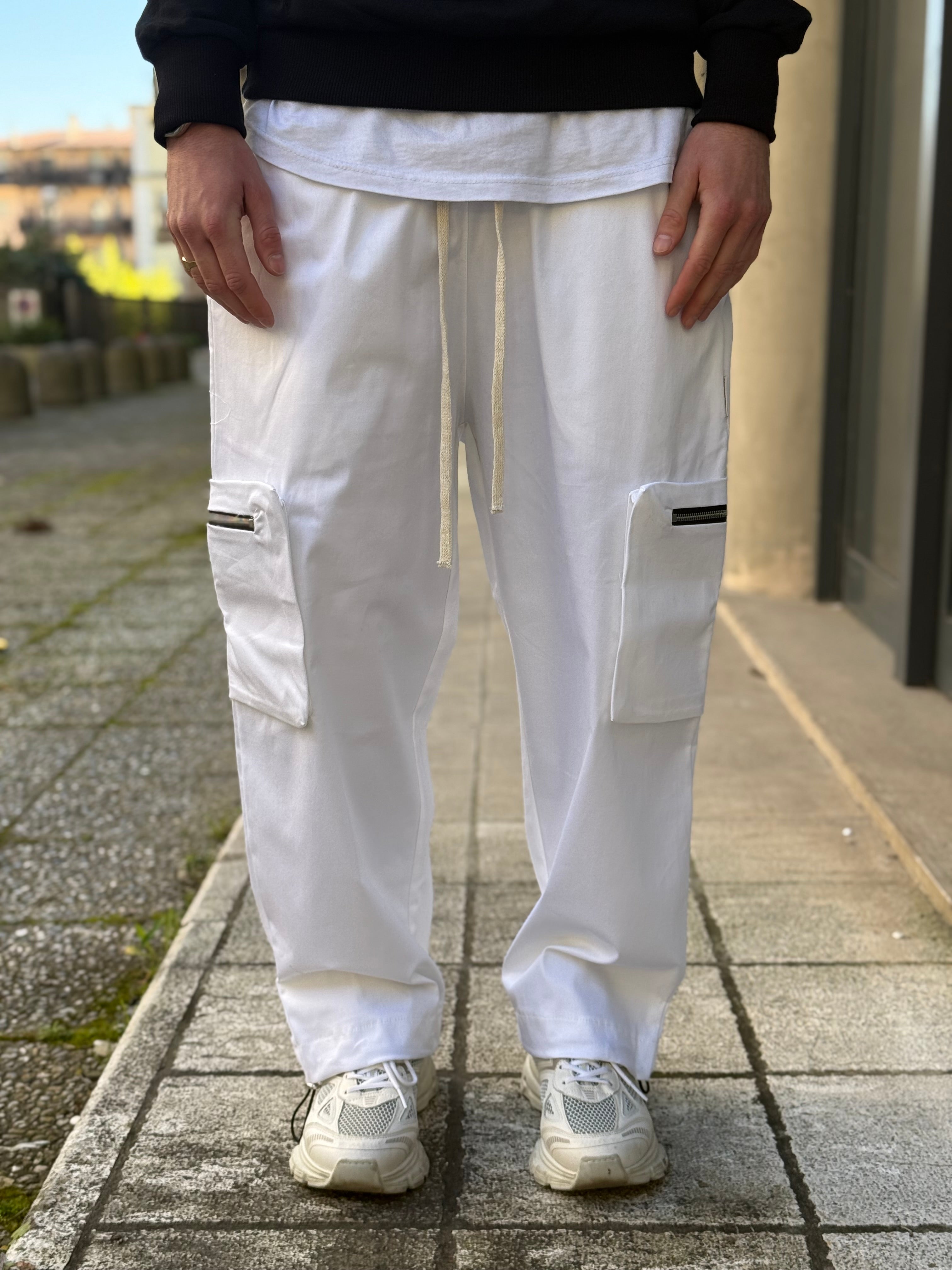 - Pantalone Cargo Bianco con molla in vita e possibilità di stringerlo alla caviglia NJB