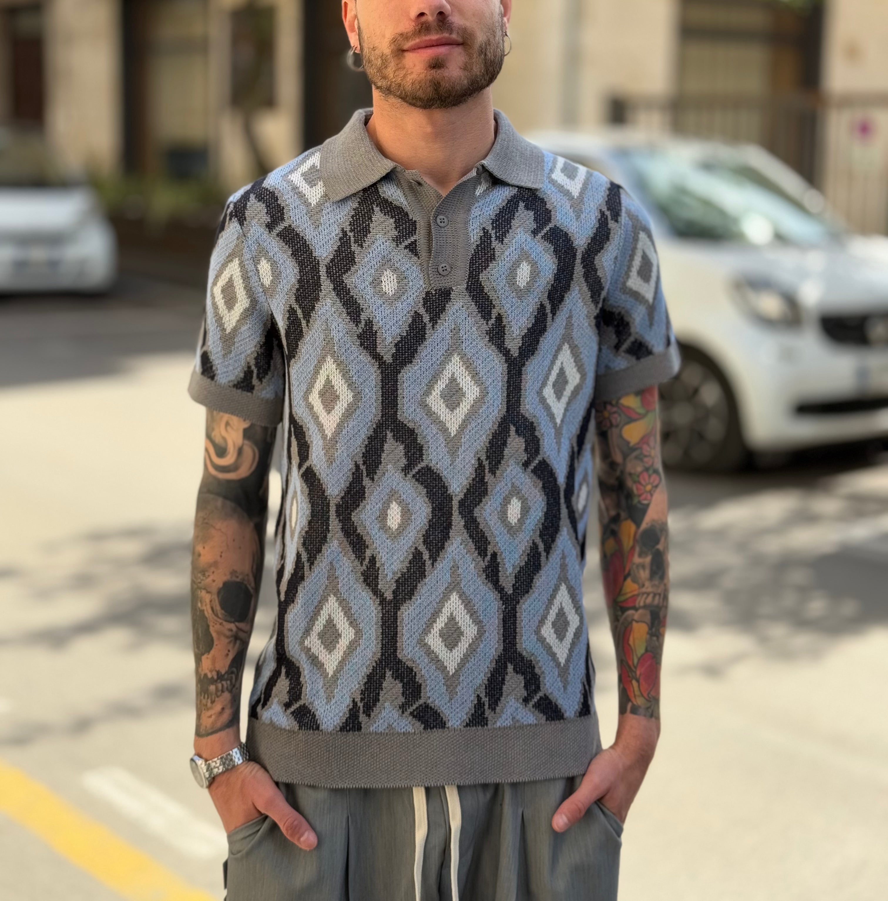 - Polo in filo grigia e celeste fantasia edizione limitata Njb
