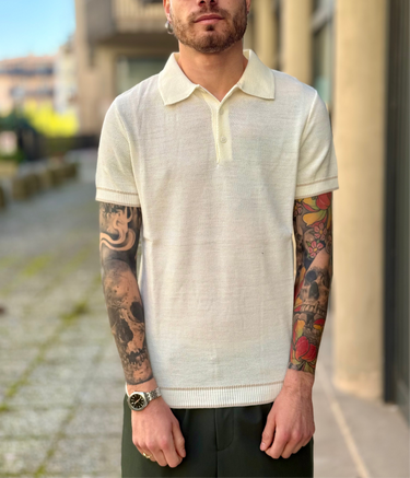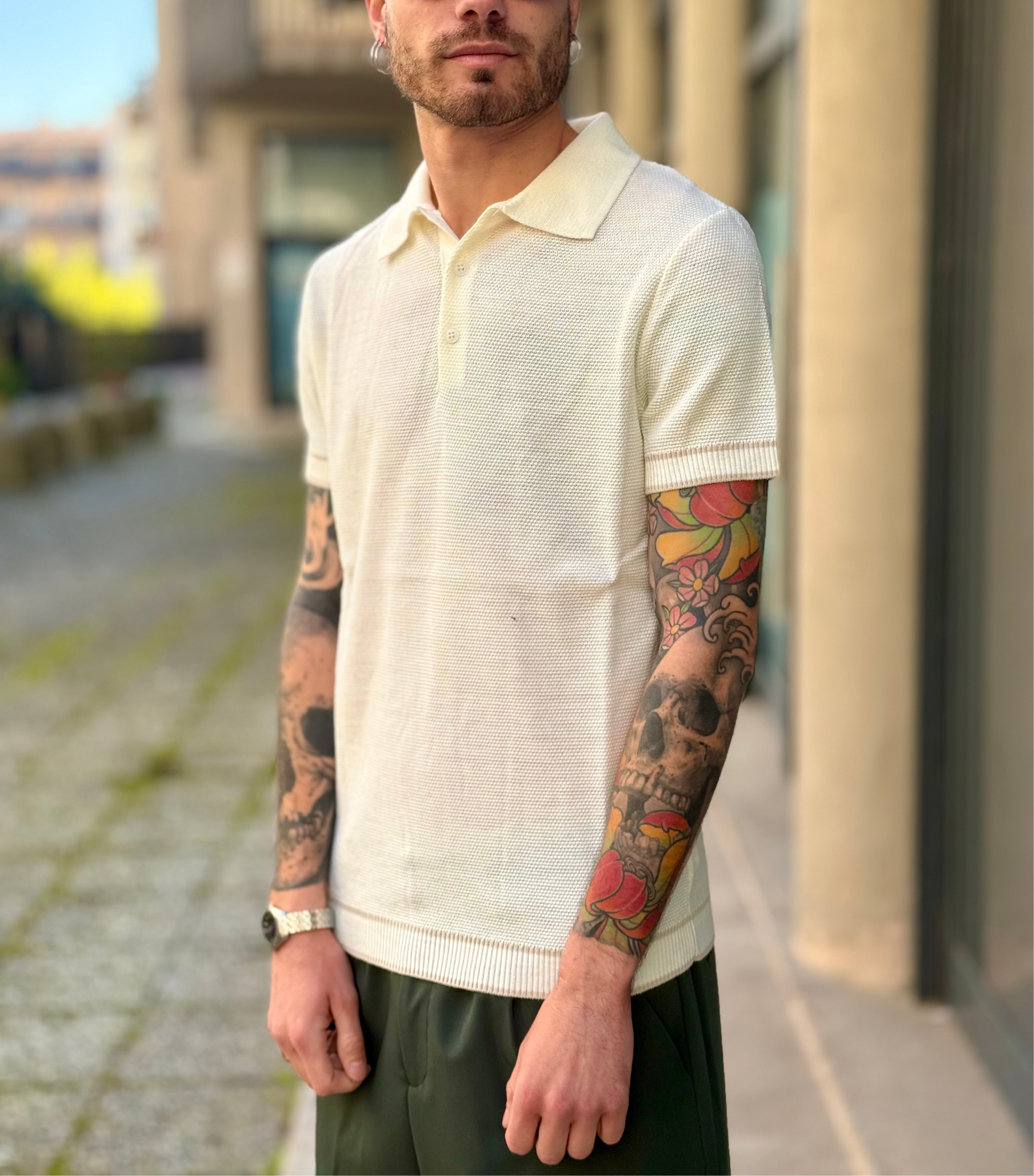 - polo panna con dettaglio manica e bordo finale in beige Njb