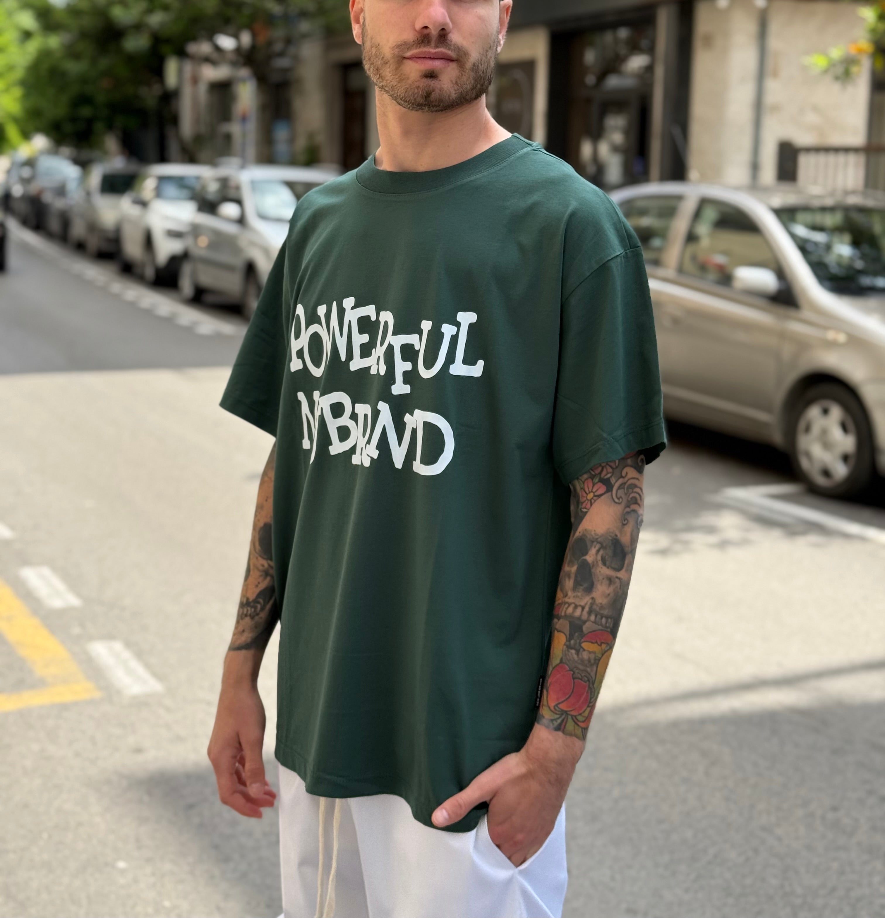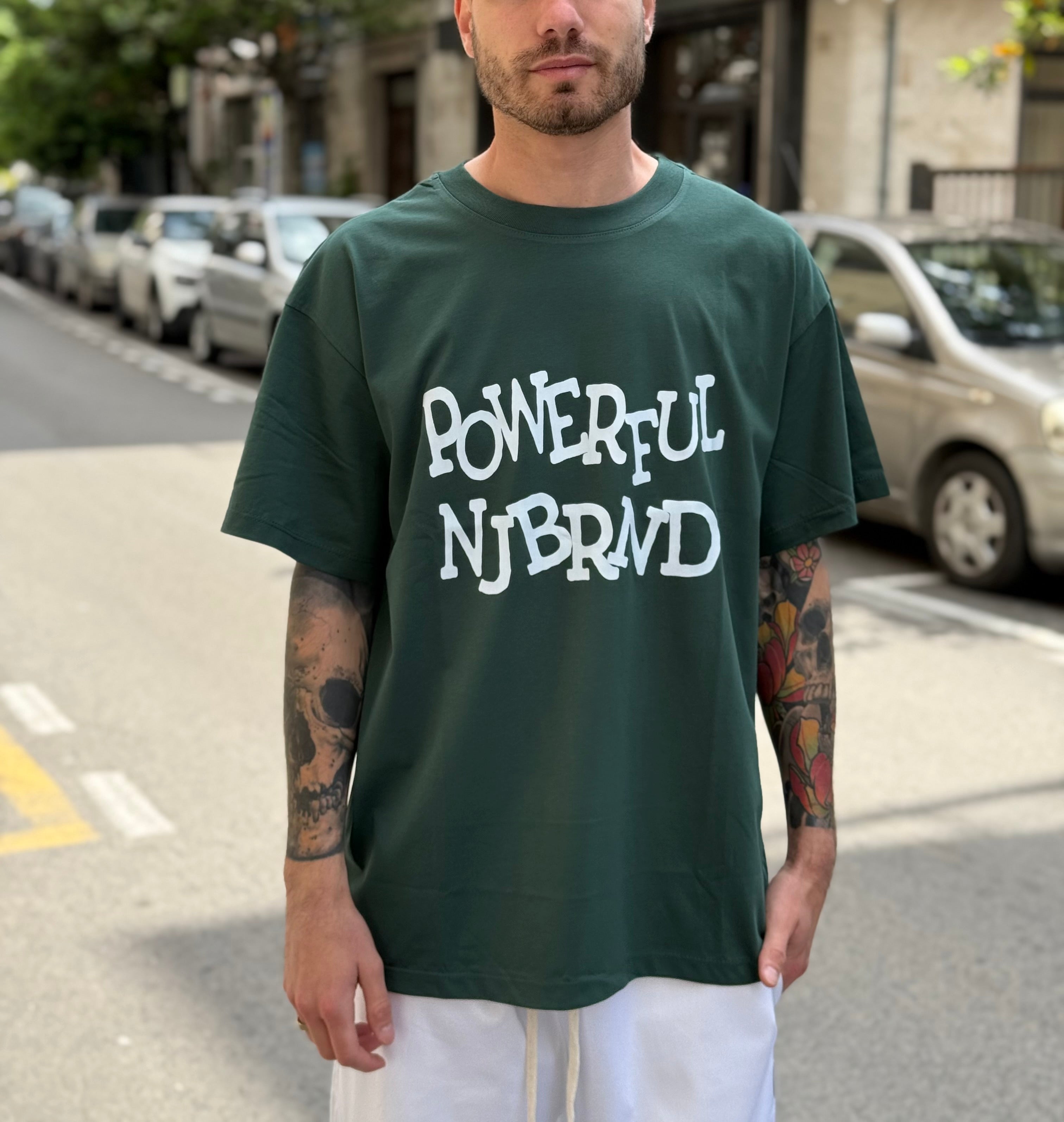 - T shirt verde con scritta powerful bianca sul davanti Njb