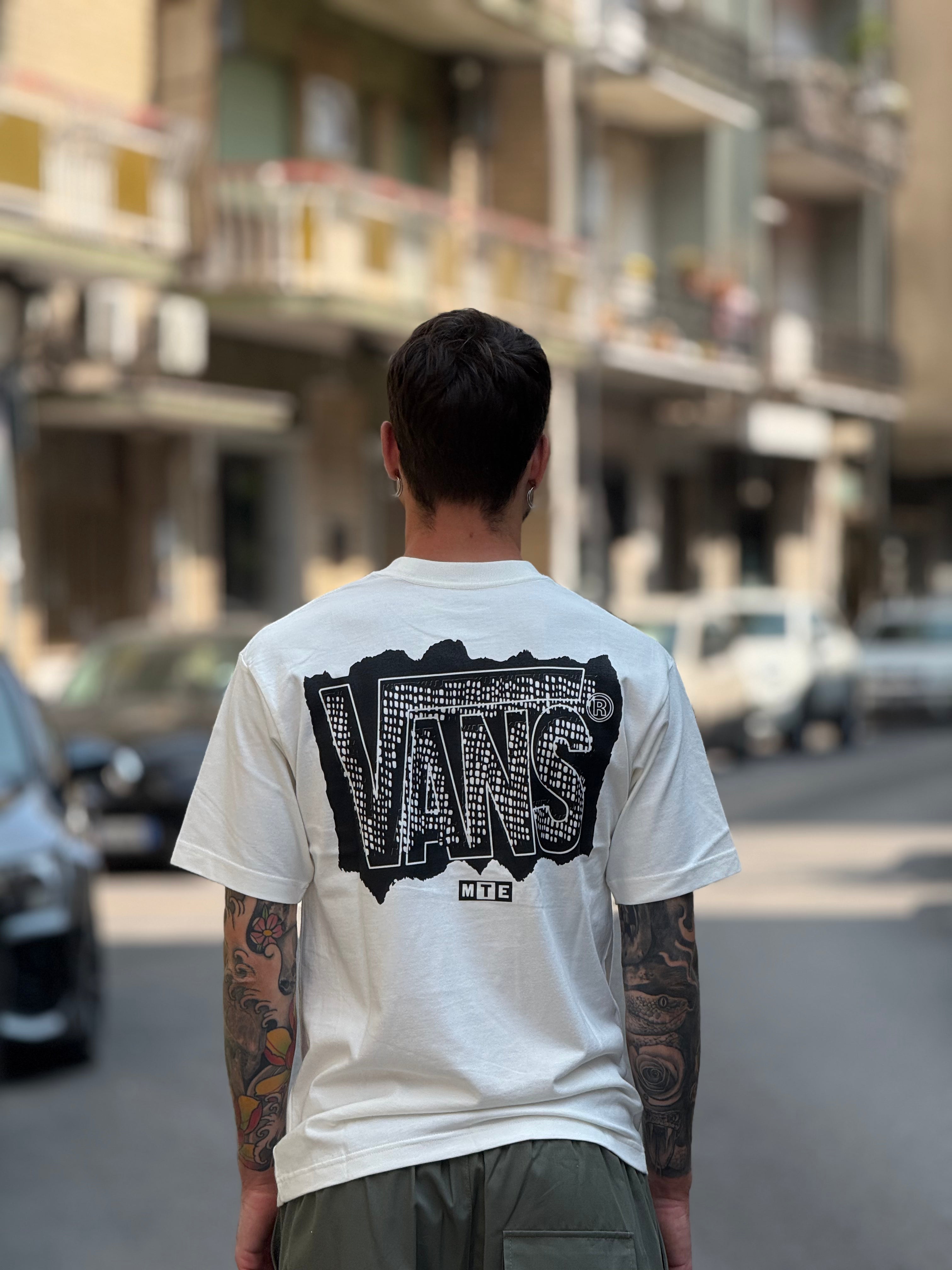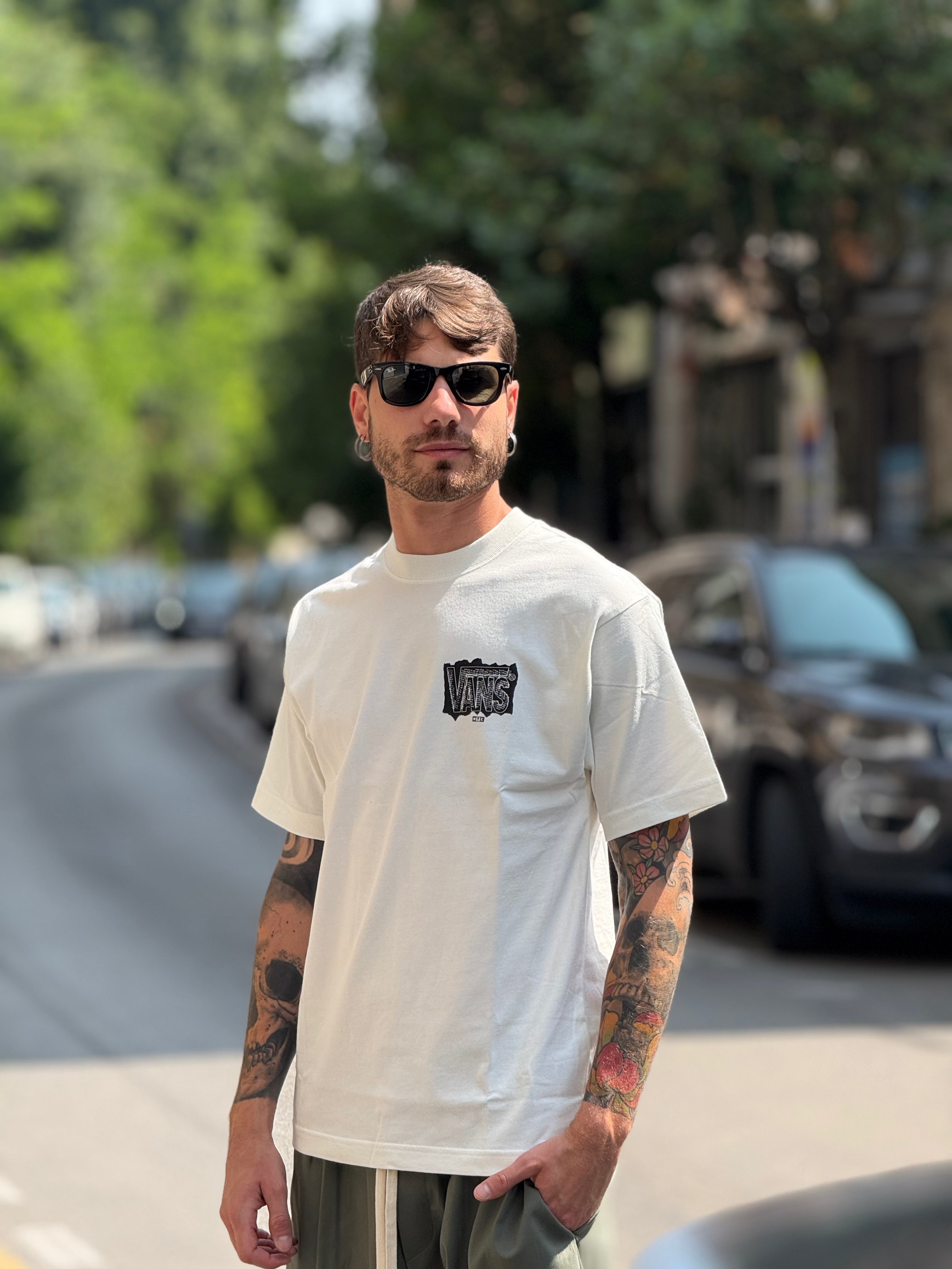 - t shirt panna con logo laterale e dietro la schiena Vans