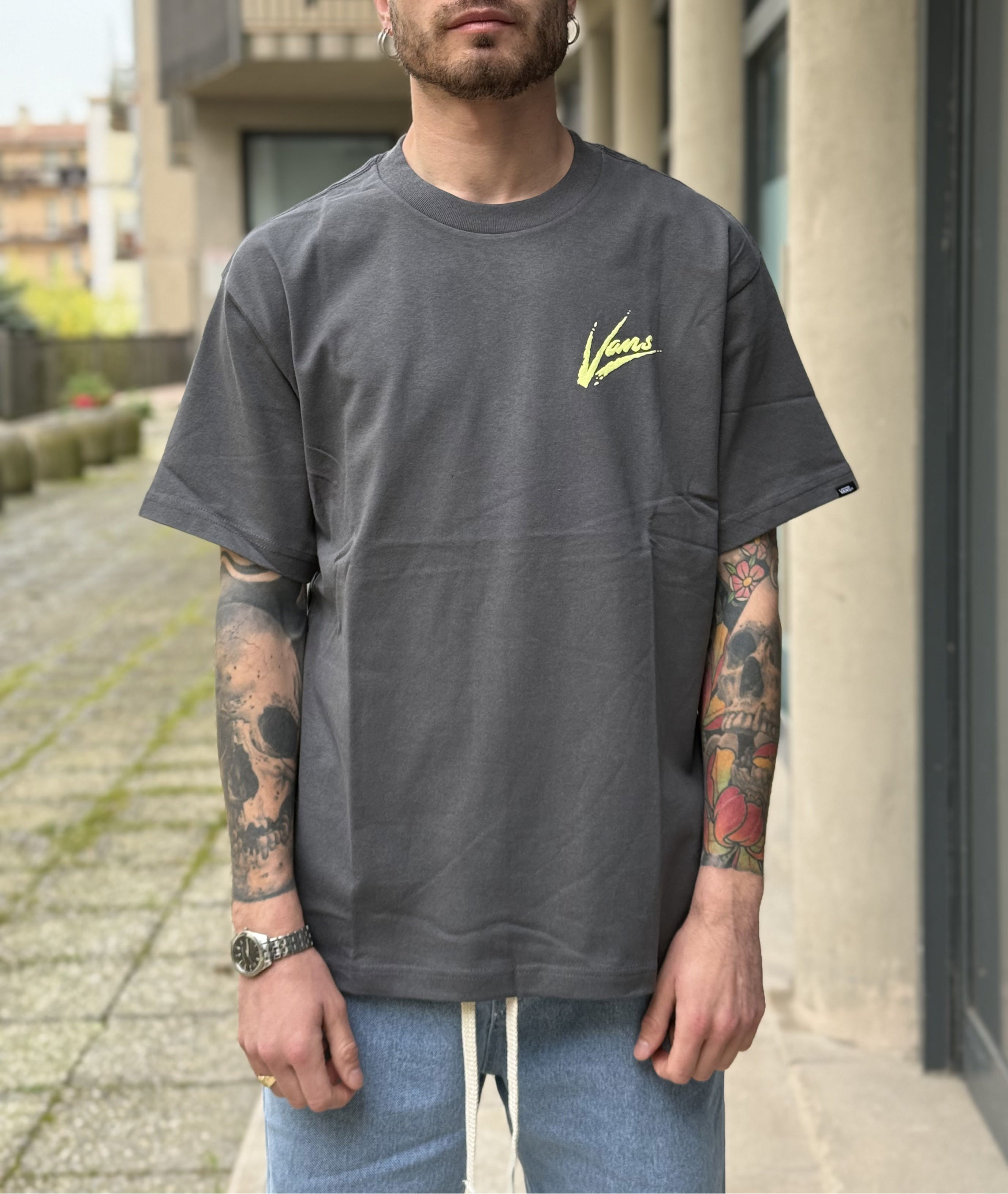 -t shirt piombo con logo dietro Vans