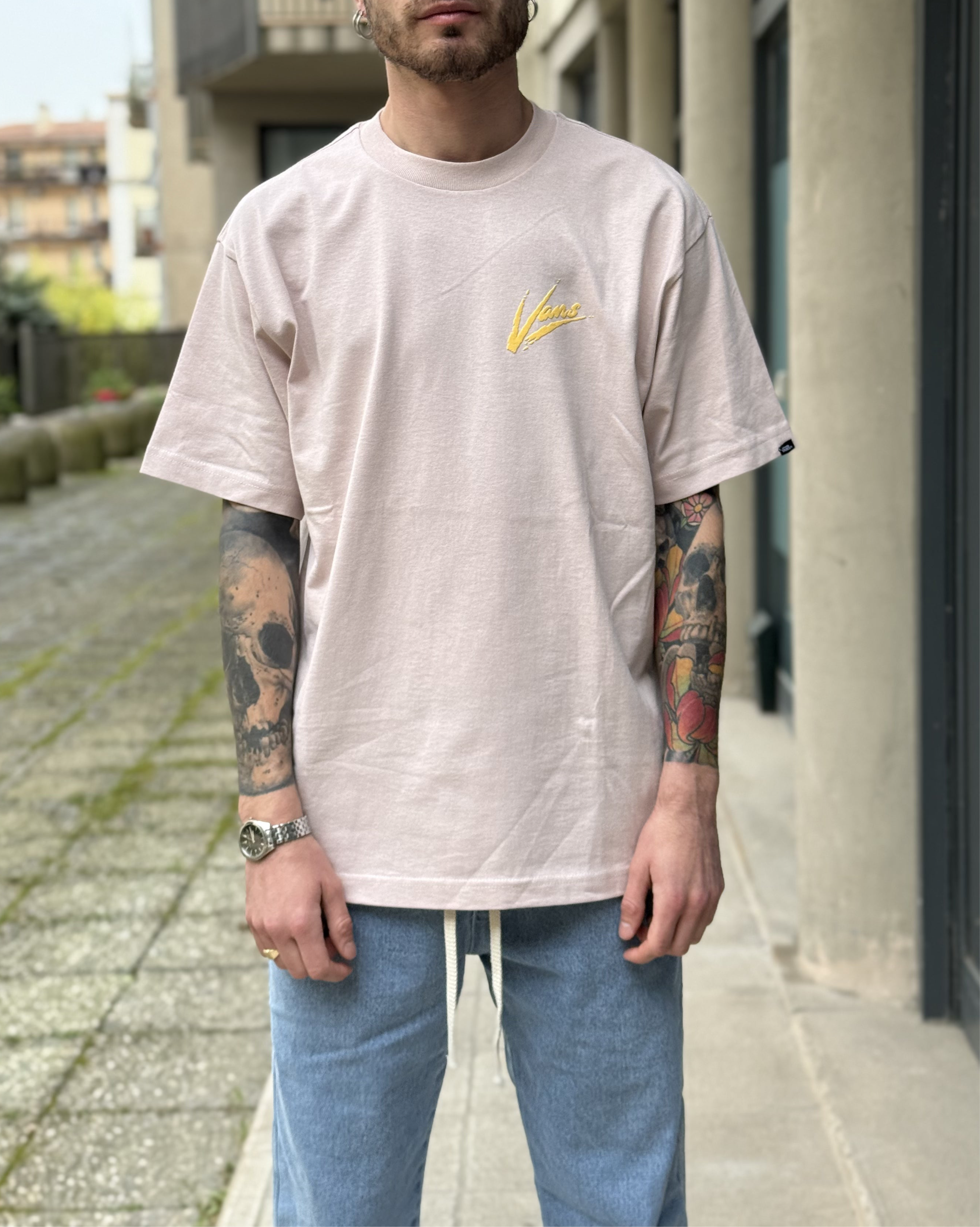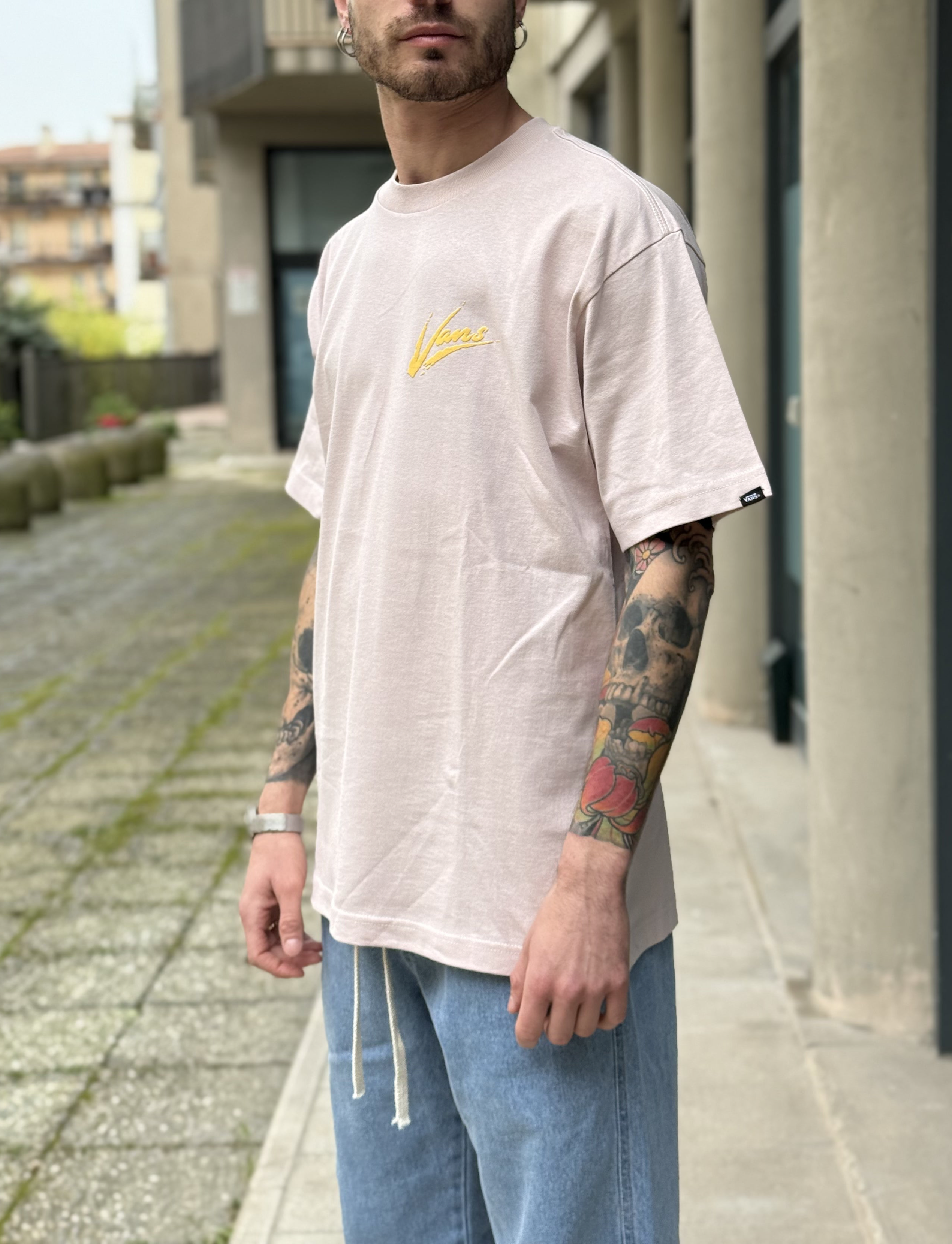 - t shirt rosa con logo dietro Vans