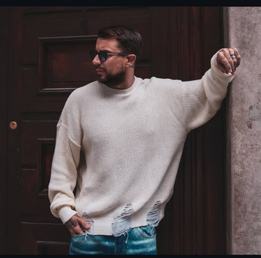 - maglione bianco con rotture di cotone panna Njb